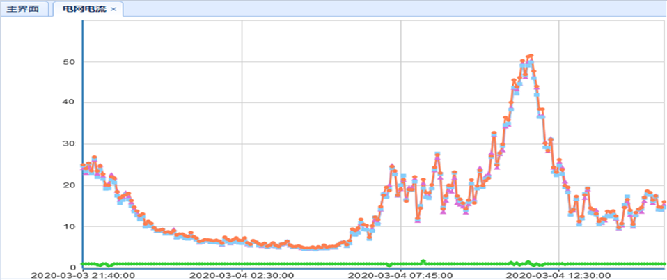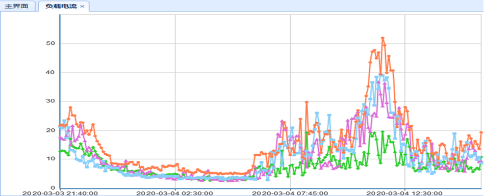 用電高峰時(shí)段B相的電流遠(yuǎn)遠(yuǎn)大于A、C相電流,B相最大達(dá)52A左右時(shí),而C相為36A左右、A相為40A左右,N相電流最大時(shí)達(dá)到20A左右;裝置投運(yùn)后三相電流趨于一致,N相電流3A左右。