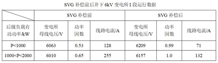 設備投運后,礦井供電質量得到了明顯改善,提高了系統功率因數,降低了線路電流起到節能作用(節能在15%以上),降低遠距離供電設備啟動的電壓降問題,提高了供電系統的穩定性和可靠性,確保了用戶井下供電系統安全合理、經濟運行。